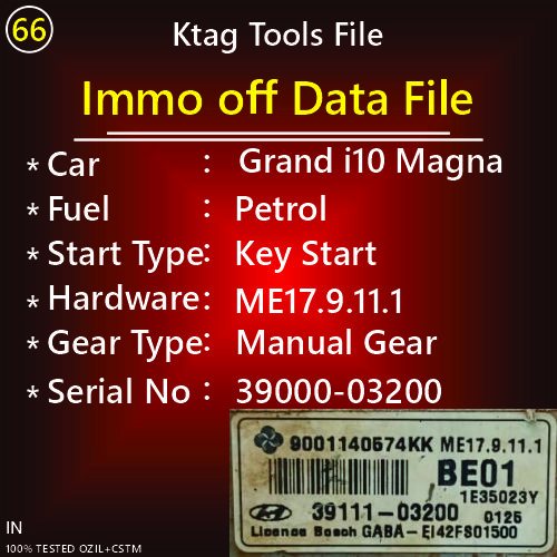 Immo Off File Grand i10 Magna 2013 Petrol Key Start Manual Gear ME17.9.11.1 BE01 39111-03200 Ktag File