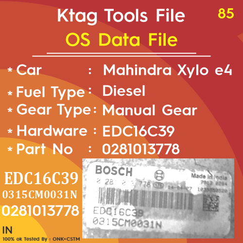 OS Data File Mahindra Xylo e4 Diesel Manual Gear Key Start EDC16C39 0281013778 0315CM0031N Ktag Tools File
