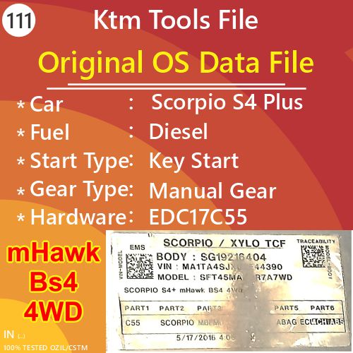 OS Data File Mahindra Scorpio S4 plus Diesel EDC17C55 Manual Gear Key Start mHawk BS4 4WD ktm Tools file