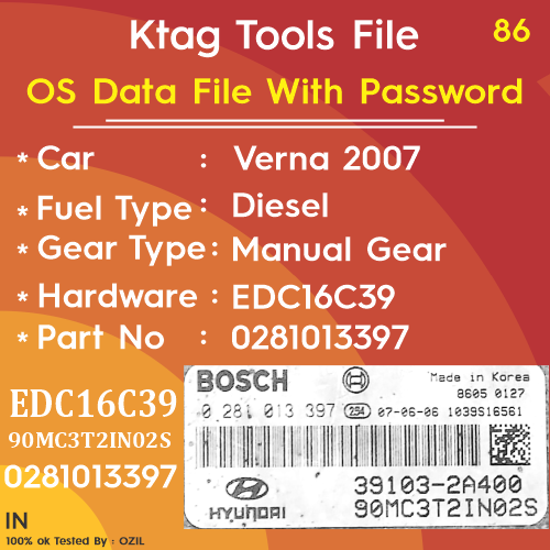 OS Data File With Password Verna 2007 Diesel Manual Gear Key Start 0281013397 EDC16C39 39103-2A400 90MC3T2IN02S ktag tools file