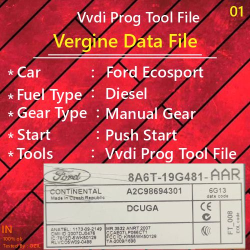 Vergine Data Ford Eco-Sport Diesel Keyless Module Push Start Manual Gear BCM Fra Data Vvdi prog tool file